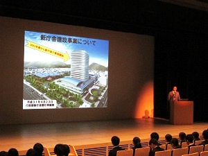 5月8日、ぎふメディアコスモスで開催された岐阜市自治会連絡協議会において、新庁舎建設事業の進捗を報告いたしました。
