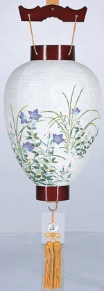 岐阜提灯の特色(とくしょく)は、細いヒゴを巻き、薄い和紙を張って秋の七草・花鳥・風景などの絵を描いた繊細(せんさい)で優美(ゆうび)なものです。