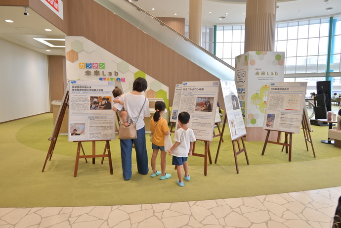 地域に根差す応援企業のブランドイメージ向上に繋がる活動を紹介するため、応援企業のカラフルタウン岐阜と連携し、「働きやすい職場環境」や「地域との交流」の情報をパネル展にして展示しています。