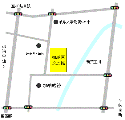 | 加納 | 岐阜市加納東公民館 | 岐阜市加納西丸町1丁目73番地2 |