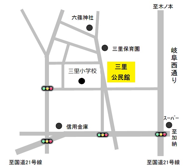| 三里 | 岐阜市三里公民館 | 岐阜市六条東2丁目14番9号 |