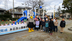 本荘西公園複合遊具完成記念式典に出席し、あいさつ(同所)