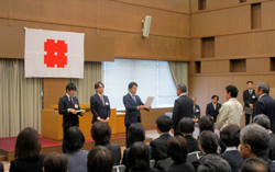 退職者辞令交付式にて、あいさつ及び辞令交付