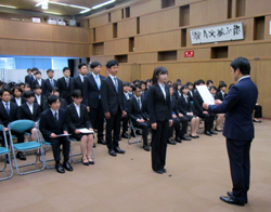岐阜薬科大学入学式にてあいさつ(同大学三田洞キャンパス)