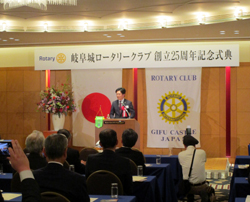 岐阜城ロータリークラブ創立25周年記念式典に出席し、あいさつ(都ホテル岐阜長良川)