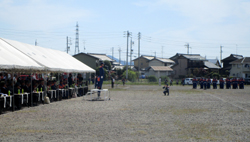 岐阜市北消防団特別点検に出席し、あいさつ(鏡島大橋北駐車場)