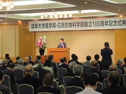 岐阜大学農学部・応用生物科学部創立100周年記念式典に出席し、あいさつ(岐阜グランドホテル)