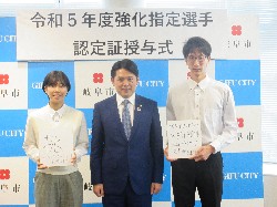 令和5年度強化指定選手認定証授与式にて、あいさつ及び認定証を授与