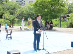 2024体振会フェスティバルに出席し、あいさつ(清水緑地公園)