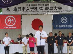 第15回全日本女子相撲岐阜大会に出席し、あいさつ(岐阜メモリアルセンター)