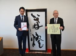岐阜市出身の書家 安藤秀川氏からの書作品「篝燈」の寄附に対して感謝状を贈呈