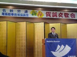 名鉄労連尾張岐阜地域協議会2025年新春賀詞交歓会に出席し、あいさつ(岐阜グランドホテル)