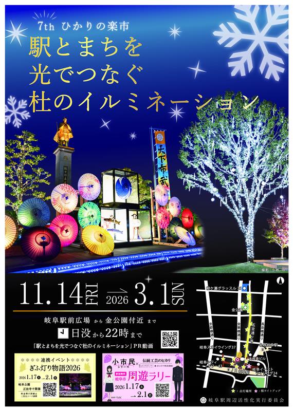小市民シリーズ×伝統工芸のヒカリ/駅とまちを光でつなぐ杜のイルミネーション×ぎふ灯り物語2026 岐阜市周遊ラリー