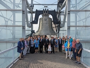 毎年7月9日の岐阜空襲の日に同市をはじめ各姉妹都市で開催している平和の鐘式典を、本市代表団の訪問にあわせ、8月2日を「Cincinnati-Gifu Peace Bell Day」とし、式典を開催しました。式典には、岐阜・シンシナティ姉妹都市委員会をはじめとする関係者らが出席し、点鐘を行いました。