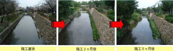 岐阜石を用いた石積み護岸と緩斜面における植生護岸