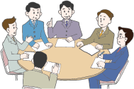 男性ばかりの会議風景は、女性には参加しにくい印象を与えます。女性も参加できる会議なら、男女をバランスよく描くことで、女性にも関心をもってもらいやすくなります。