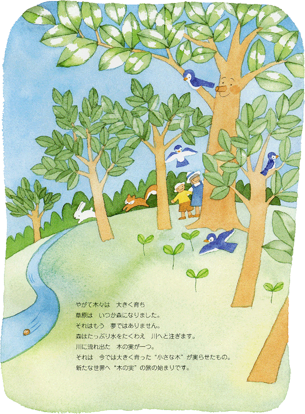 森はたっぷり水をたくわえ 川へと注ぎます。